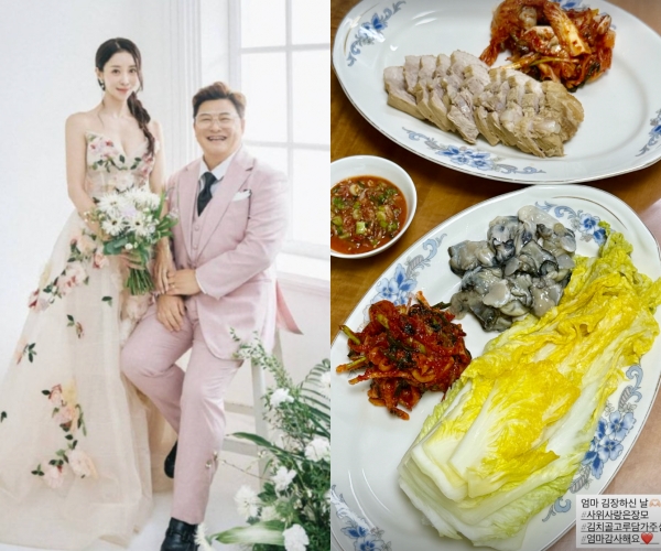 이와 함께 공개한 사진에는 김장 김치와 굴, 수육 등 먹음직스러운 한상이 차려져 있는 모습이다.
