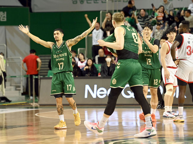 원주 DB는 15일 원주DB프로미아레나에서 개최된 2025-26 LG전자 프로농구 2라운드에서 이선 알바노의 버저비터 3점슛이 터져 서울 SK를 87-84로 이겼다. 연패를 끊은 DB는 9승 6패로 단독 3위가 됐다. 4연승이 좌절된 SK는 7승 8패로 6위다.