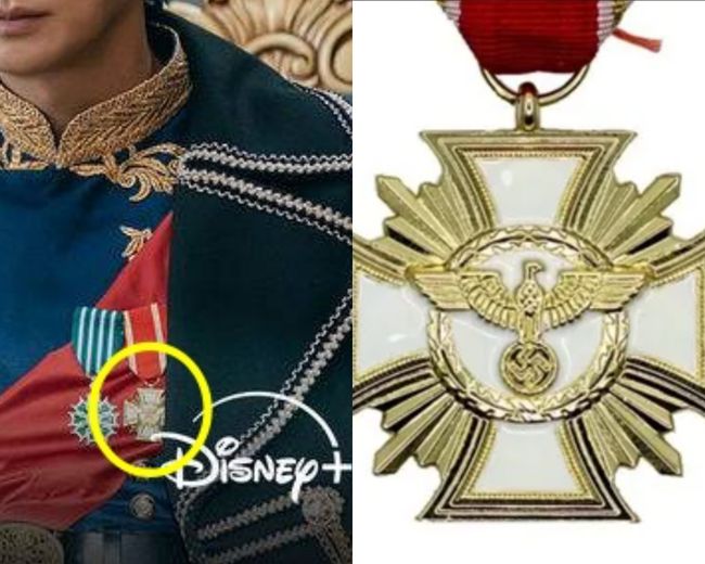 디즈니+ 오리지널 시리즈 ‘재혼황후’의 스틸컷이 공개된 가운데, 남자주인공 의상에 독일 나치가 사용했던 훈장과 유사한 소품이 사용돼 논란이 일었다.