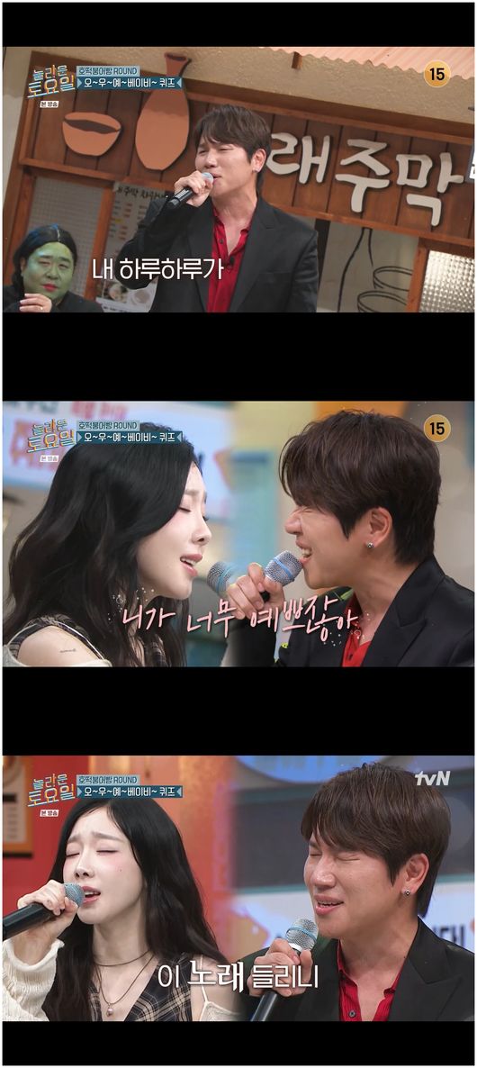 다들 케이윌에게 삐졌냐고 물었고, 케이윌은 “너 같으면 안 빠지겠냐?”라며 투덜거렸다. 이내 간식 게임에서 케이윌은 정답을 맞힌 태연을 위해 듀엣으로 노래를 불렀다.