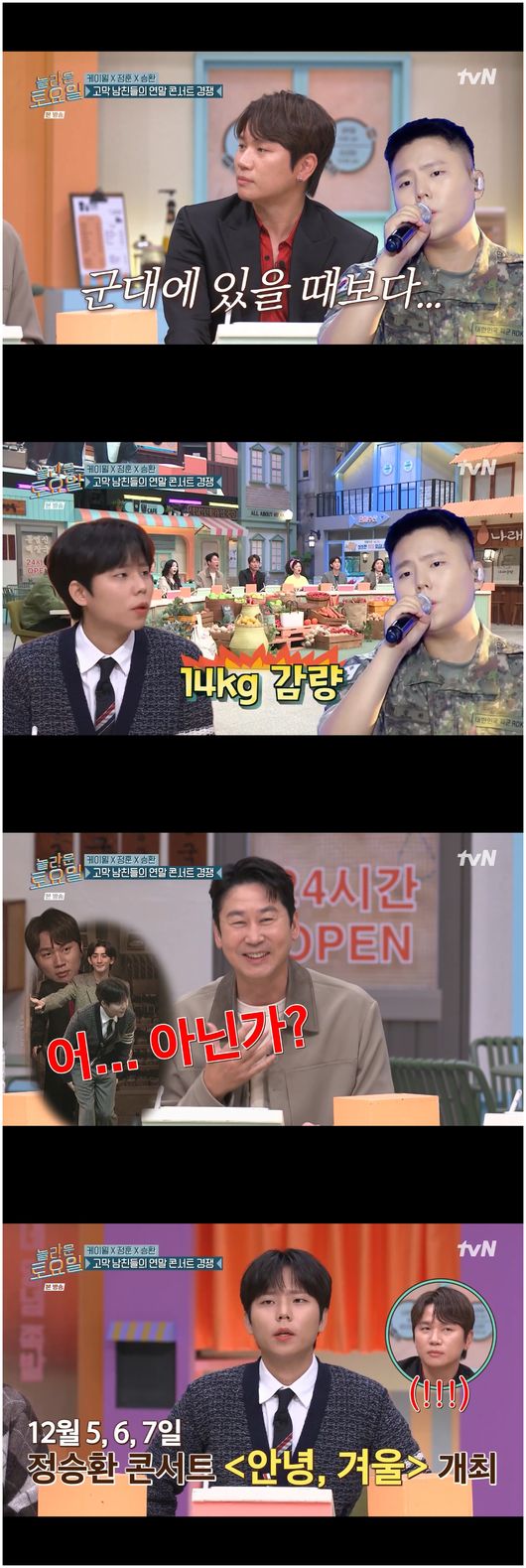 14kg 감량으로 한껏 달라진 외모를 자랑한 정승환은 그 또한 12월 5일에서 7일 총 사흘 간 공연을 한다고 밝혔다. 케이윌과 공연 일정이 똑같자 키는 "하루에 한 명씩 가 주면 되는 거 아니냐"라고 말했다. 케이윌은 "첫날에 정승환 걸 가고 나머지 이틀은 내 걸 오셔라"라며 적극 홍보했다.