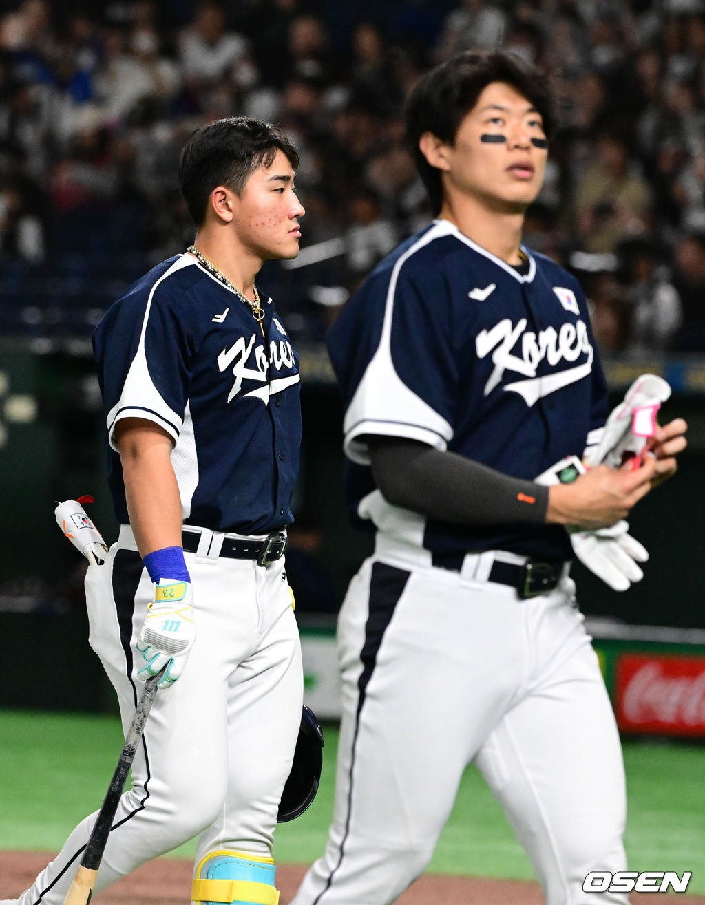 안현민, 송성문이 패배에 아쉬워하고 있다. 2025.11.15. /cej@osen.co.kr