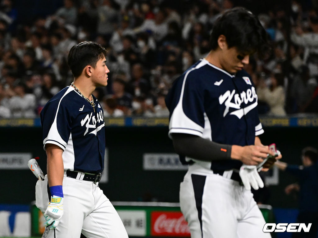 안현민, 송성문이 패배에 아쉬워하고 있다. 2025.11.15. /cej@osen.co.kr