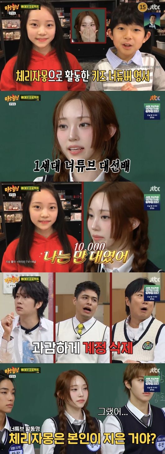 영서는 과거 키즈 유튜버로 활동했다는 이색 이력을 공개했다. 영서는 “기획, 연출, 편집 다 내가 했다. 그때 꽤 대형 유튜버였다. 나는 (구독자가) 만 대였다”라고 말한 후, “연습생을 하려고 과감히 삭제했다”라고 덧붙였다.