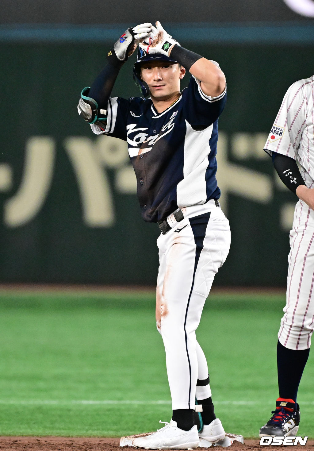 8회초 무사에서 대한민국 신민재가 우중간 2루타를 날리며 세리머니를 하고 있다. 2025.11.15. /cej@osen.co.kr