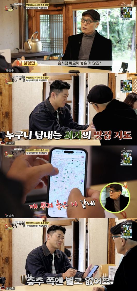 그러면서 “근데 거의 대부분 ‘여기 맛있는데’ 했을 때 백반기행 붙어 있는 집이 많았다”라고 해 허영만을 웃게 했다.