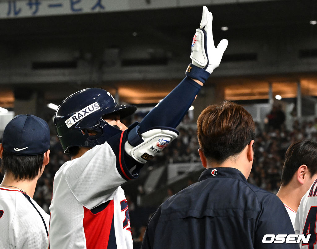9회말 2사에서 대한민국 김주원이 우중월 솔로 홈런을 치고 더그아웃에서 환호하고 있다. 2025.11.16 /cej@osen.co.kr