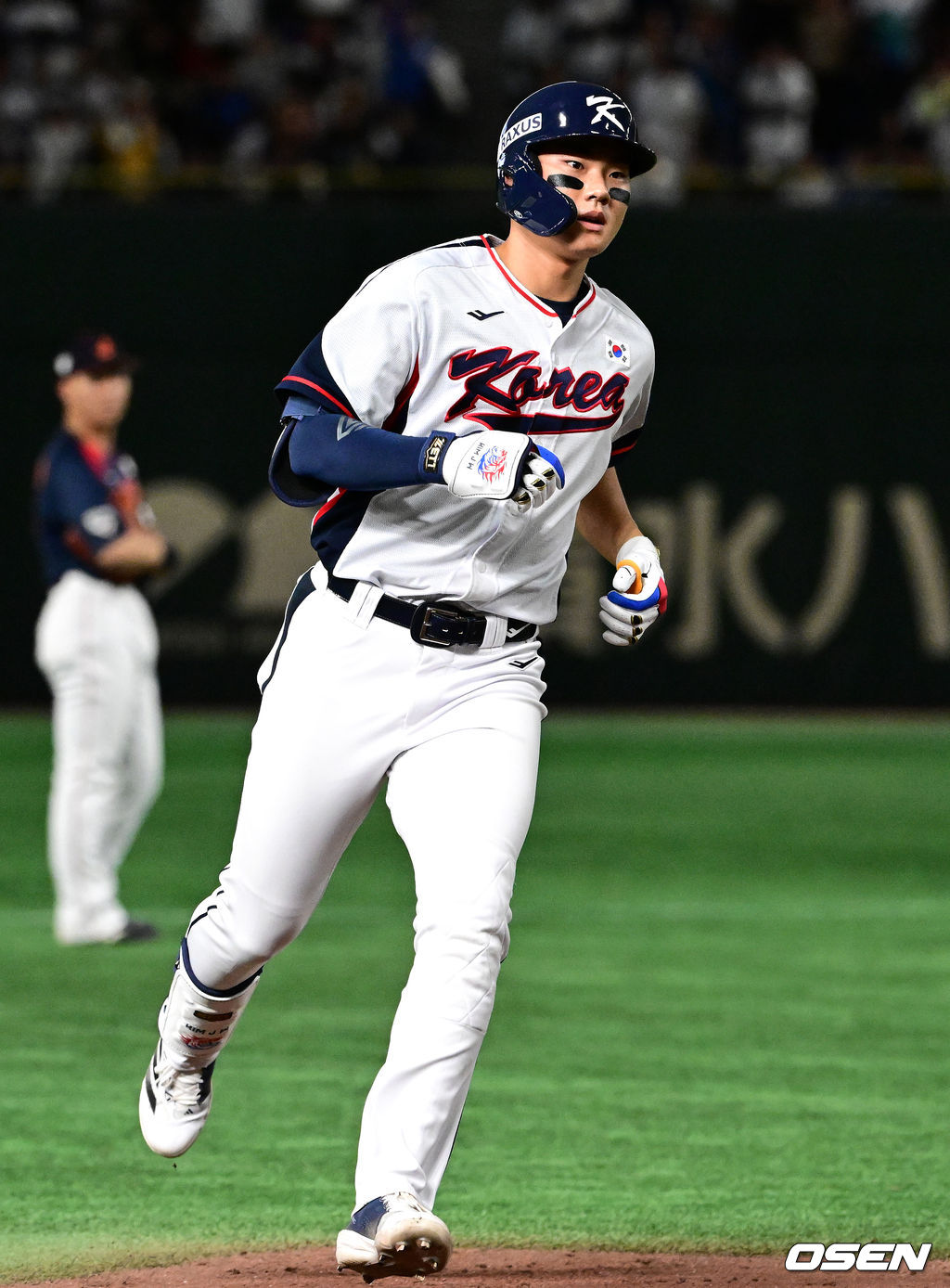 9회말 2사에서 대한민국 김주원이 우중월 솔로 홈런을 치고 그라운드를 돌고 있다. 2025.11.16 /cej@osen.co.kr