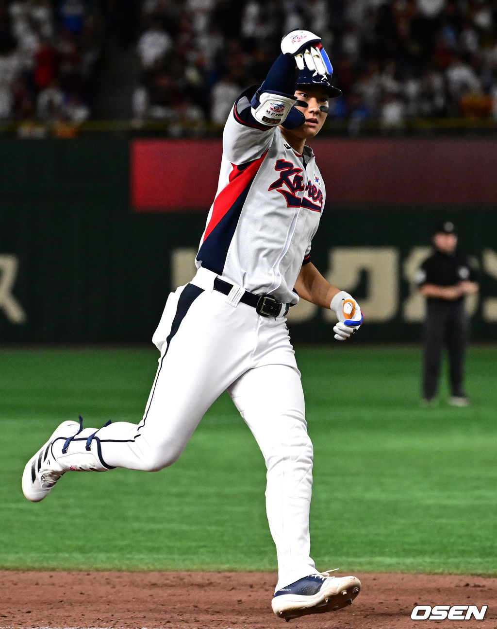 9회말 2사에서 대한민국 김주원이 우중월 솔로 홈런을 치고 그라운드를 돌고 있다. 2025.11.16 /cej@osen.co.kr