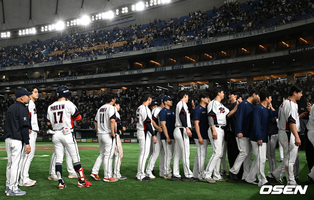 한국은 16일 일본 도쿄도 도쿄돔에서 열린 ‘2025 NAVER K-BASEBALL SERIES’ 일본과의 2차전에서 7-7 무승부를 거뒀다. 2연전 시리즈 1무 1패를 기록한 한국은 2015년 프리미어12 준결승전 4-3 승리 이후 성인 대표팀 기준(아시안게임 제외) 한일전에서 10연패를 기록했지만 처음으로 무승부를 만드는데 성공했다.