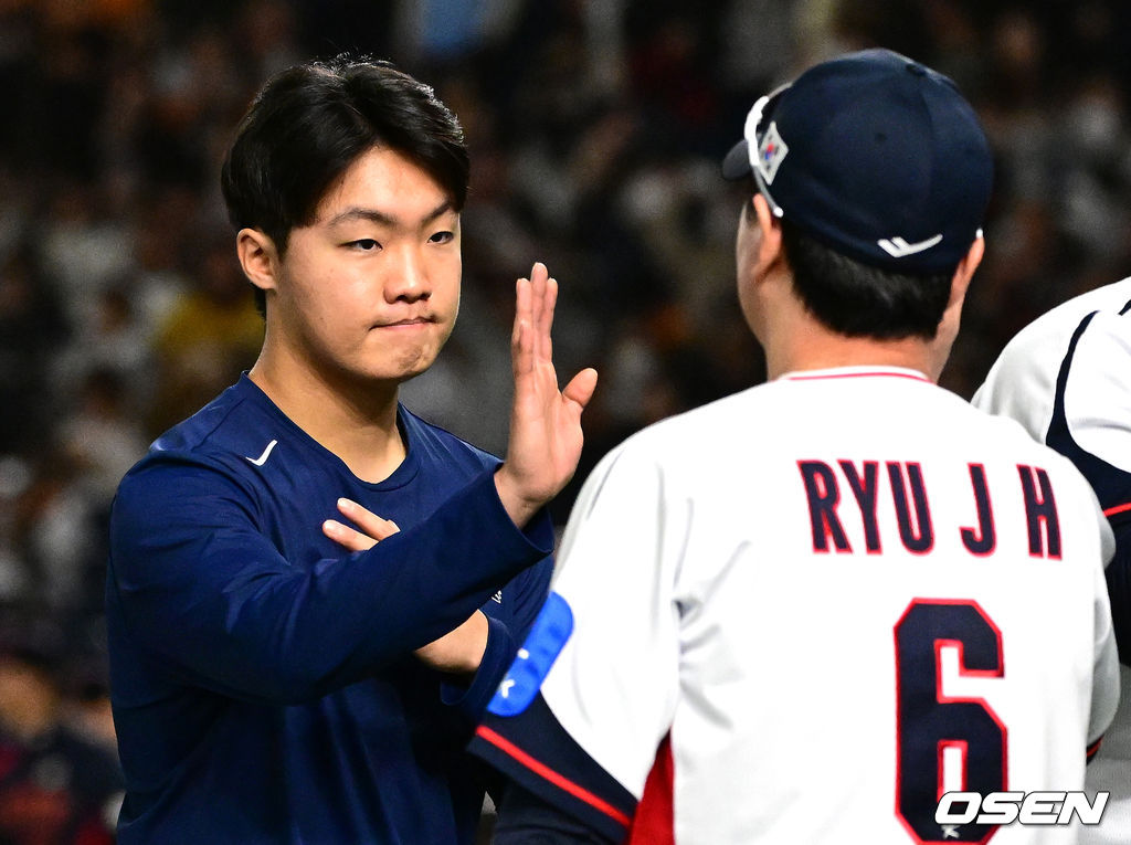 경기 종료 후 대한민국 정우주가 류지현 감독과 하이파이브를 하고 있다. 2025.11.16 /cej@osen.co.kr