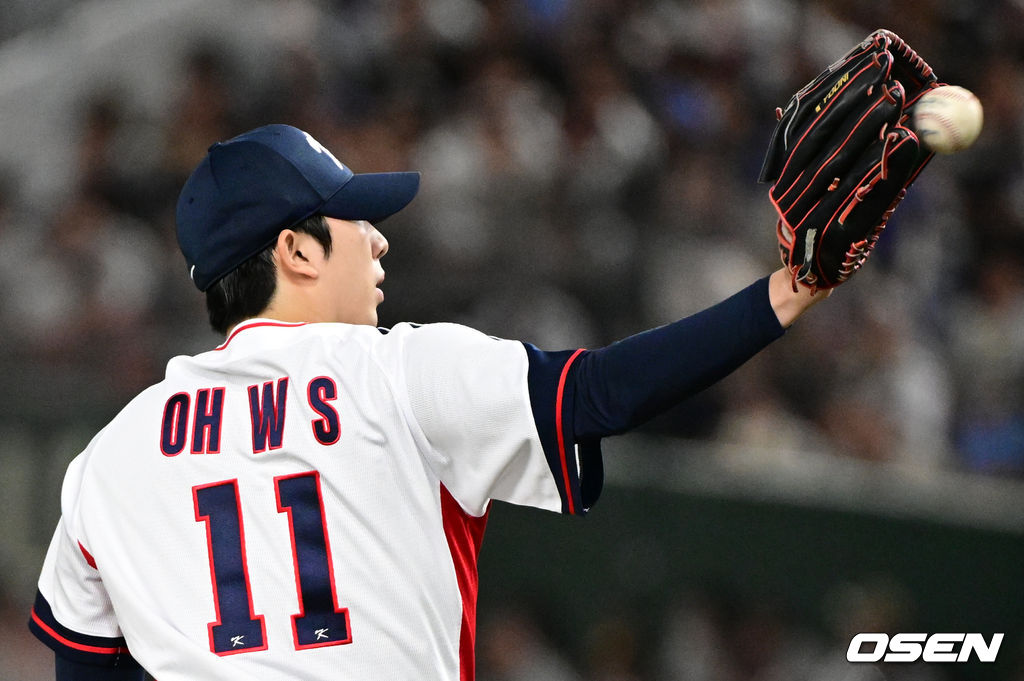 4회 오원석이 공을 건네받고 있다. 2025.11.16 /cej@osen.co.kr