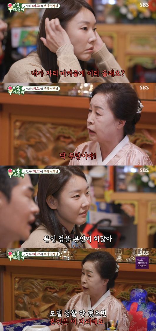 한혜진이 당황하자 무속인은 “도망가면 신이 더 빨리 온다. 모델 생활 안 했으면 본인은 이 자리에 앉았을 거다. 한 씨네 집 자체가 기운이 굉장히 세다”라며 며느리 무속인을 불러 긴장감을 높였다.