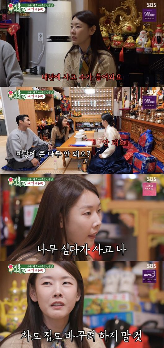 또 무속인은 “집을 새로 지었죠? 정원 쪽으로 손댈 자리가 있어?”라고 물었고, 한혜진이 “나무 심으려고 했다”고 하자 “안 된다. 그렇게 사고 수가 들어온다”라고 단호하게 말해 눈길을 끌었다.