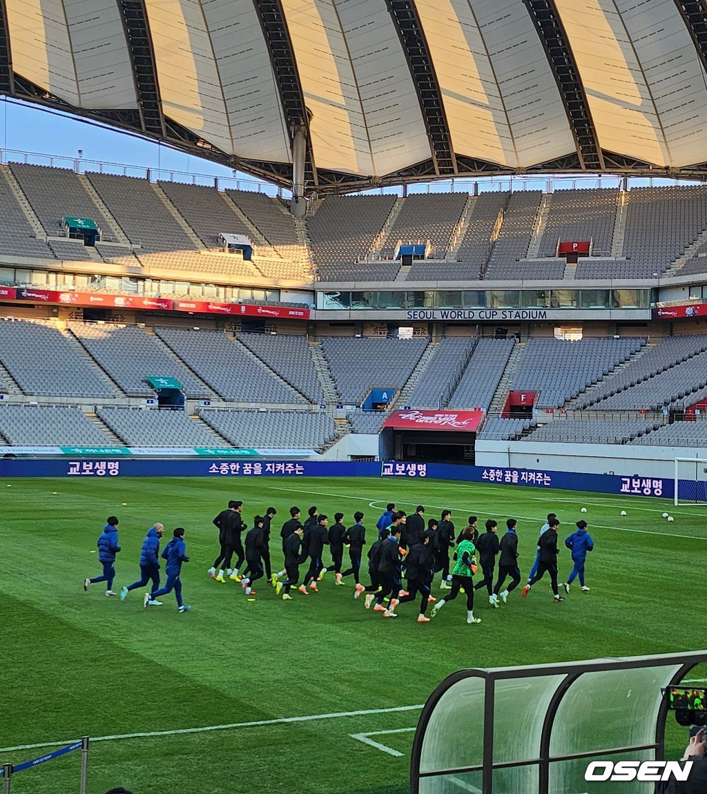 대표팀은 17일 서울월드컵경기장에서 가나전 대비 최종 훈련을 소화했다. 이날 성산동은 오후 4시 30분경 3.5도, 체감 온도 0.8도까지 떨어지는 추위가 닥쳤다. 선수들도 지난주 볼리비아전 대비 최종 훈련과 달리 이한범(미트윌란)을 제외한 모두가 긴팔과 긴바지를 입고 나왔다.