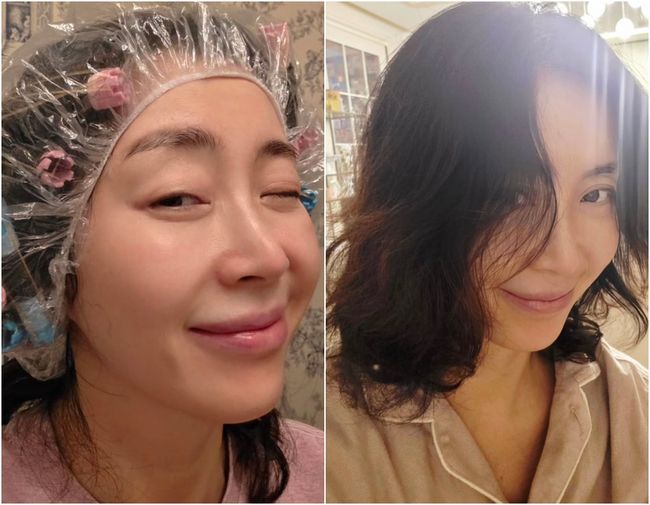 송윤아는 16일 자신의 인스타그램에 헤어 롤을 가득 꽂은 채 비닐캡을 쓴 모습의 사진을 올리며 “나는 이것도 하는 사람이 되었다… 10분 뒤 어떻게 돼 있을지 참…”이라는 글을 남겼다. 민낯에 익살스러운 윙크까지 더한 모습은 여배우의 관리 비법을 엿보게 하면서도 현실적인 매력을 드러내 미소를 자아냈다.