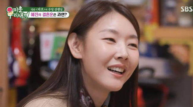 한혜진의 결혼운을 본 무속인은“결혼할 사람이 있었다. 이 나라가 아닌 외국에 잠깐 있었을 때였나. 그 사람이 마음의 상처가 매우 깊었다”고 말했다. 이어 “죽은 귀신이 아니라 산 귀신이다. 헤어진 사람이 아직 마음에 한혜진을 품고 있다. 그래서 새로운 인연이 들어오면 자꾸 깨지는 형국”이라며“지금까지 만난 남자친구들을 다 먹여 살렸다. 그 돈으로 집 한 채는 지었을 것”이라고 덧붙였다.