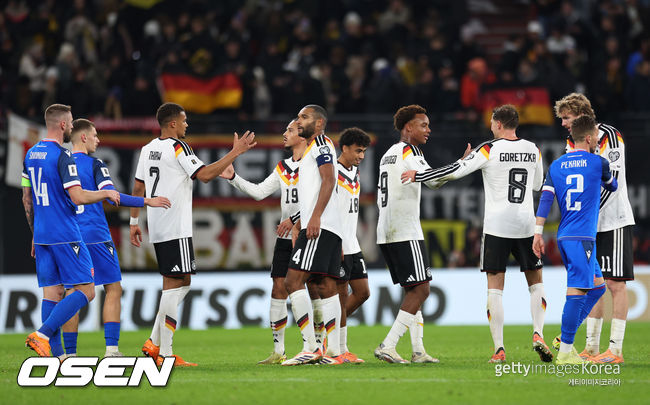 후반 22분, 볼테마데와 그나브리가 수비 사이 공간을 찢어놓았고, 바쿠가 침착하게 밀어 넣으며 5-0을 만들었다. 후반 34분에는 비르츠 대신 투입된 아드라오고가 추가골까지 넣으며 6-0 대승에 마침표를 찍었다. 경기는 결국 그대로 종료됐다. 독일은 슬로바키아를 압도적으로 제압하며 조 1위로 월드컵 본선을 조기에 확정했다. /mcadoo@osen.co.kr