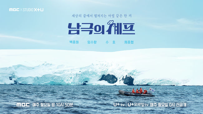 지난 17일 방송된 '기후환경 프로젝트 - 남극의 셰프' 첫 회에서는 백종원X임수향X수호X채종협이 기후 변화 연구의 최전선인 남극으로 떠났다. 네 사람은 최초로 ‘명예 대원’ 자격으로 남극을 방문하게 됐고, 펭귄마을, 세종기지 등을 방문했다. 수호는 “폭우가 내리다가도 폭염에 가까워지는 등 이상 기후를 보며 ‘지구 온난화 때문이구나’ 라는 걸 느끼고 있다. 남극에 가는 것 자체에서 책임감과 부담감을 느낀다. 남극의 현재 상황을 잘 보여주고 싶다”라며 각오를 전했다.