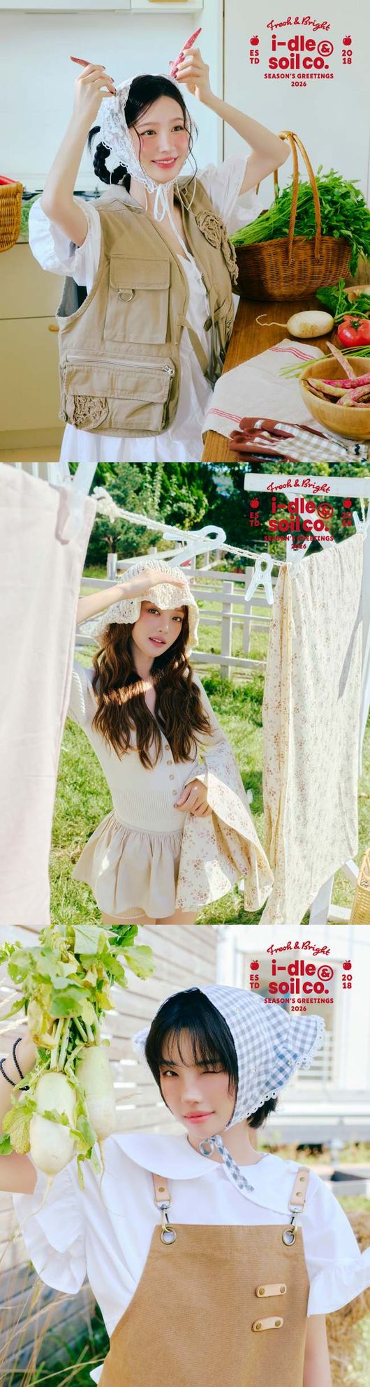 소속사 큐브엔터테인먼트는 18일 아이들(미연, 민니, 소연, 우기, 슈화)의 공식 SNS를 통해 'i-dle 2026 SEASON'S GREETINGS [i-dle & Soil Co.]' 프리뷰 이미지를 공개했다.