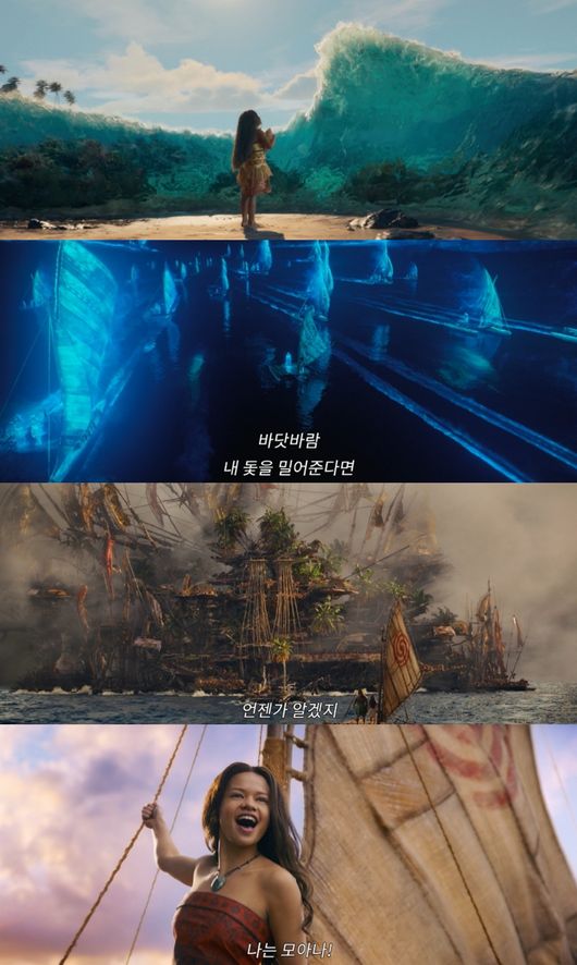 함께 공개된 티저 예고편은 모아나로 완벽하게 변신한 캐서린 라가이아의 비주얼을 비롯해, 눈과 귀를 즐겁게 하는 바다 풍경과 황홀한 음악이 펼쳐져 이목을 집중시킨다. 특히 예고편의 시작부터 흘러나오는 아름다운 선율의 음악과 이야기의 배경이 되는 섬과 바다의 환상적인 비주얼은 실사로 생생하게 탄생한 영상미를 더욱 기대하게 한다. 여기에 “바다가 날 불러”, “언젠가 알겠지, 나 어디까지 가게 될지” 등의 가사는 경이로운 자연 속 항해를 준비하고 나아가는 모아나의 모습과 어우러져, 앞으로 펼쳐질 모험에 대한 궁금증을 한껏 높인다.