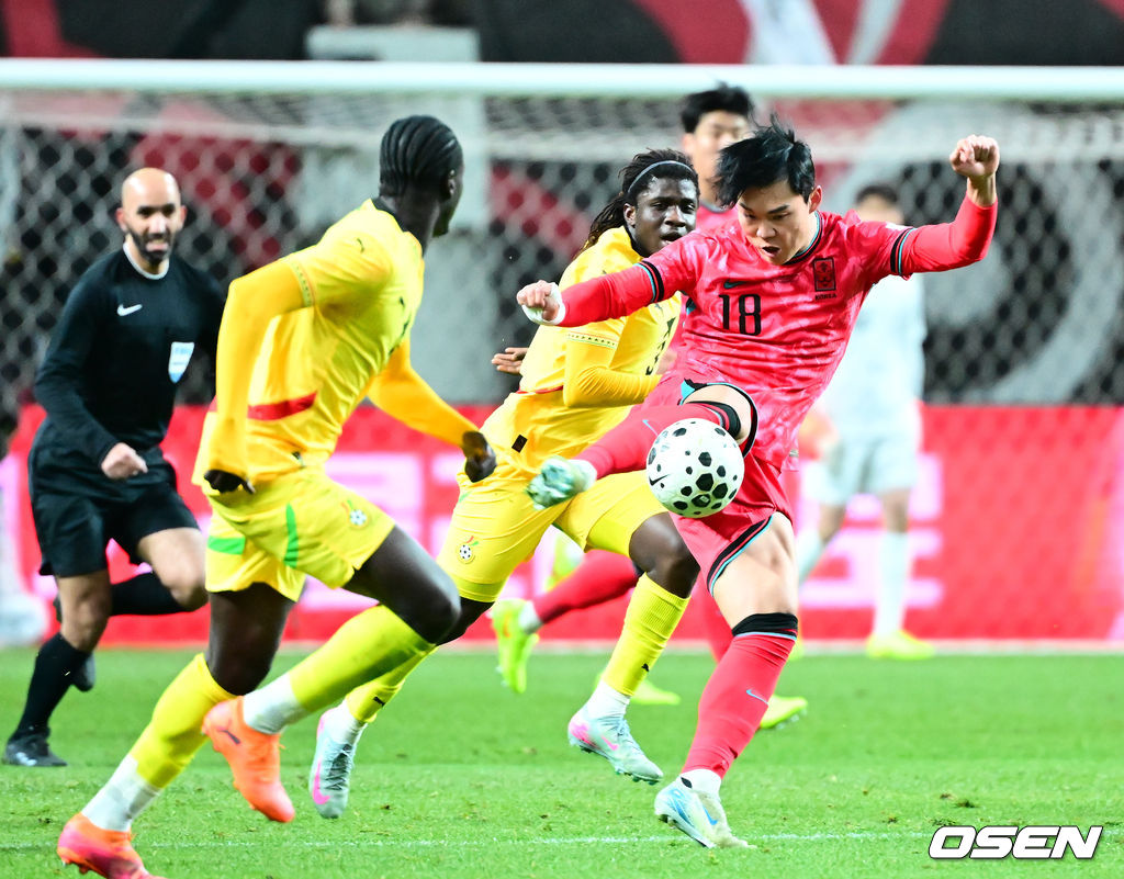 전반 대한민국 오현규가 패스를 하고 있다. 2025.11.18 /jpnews@osen.co.kr