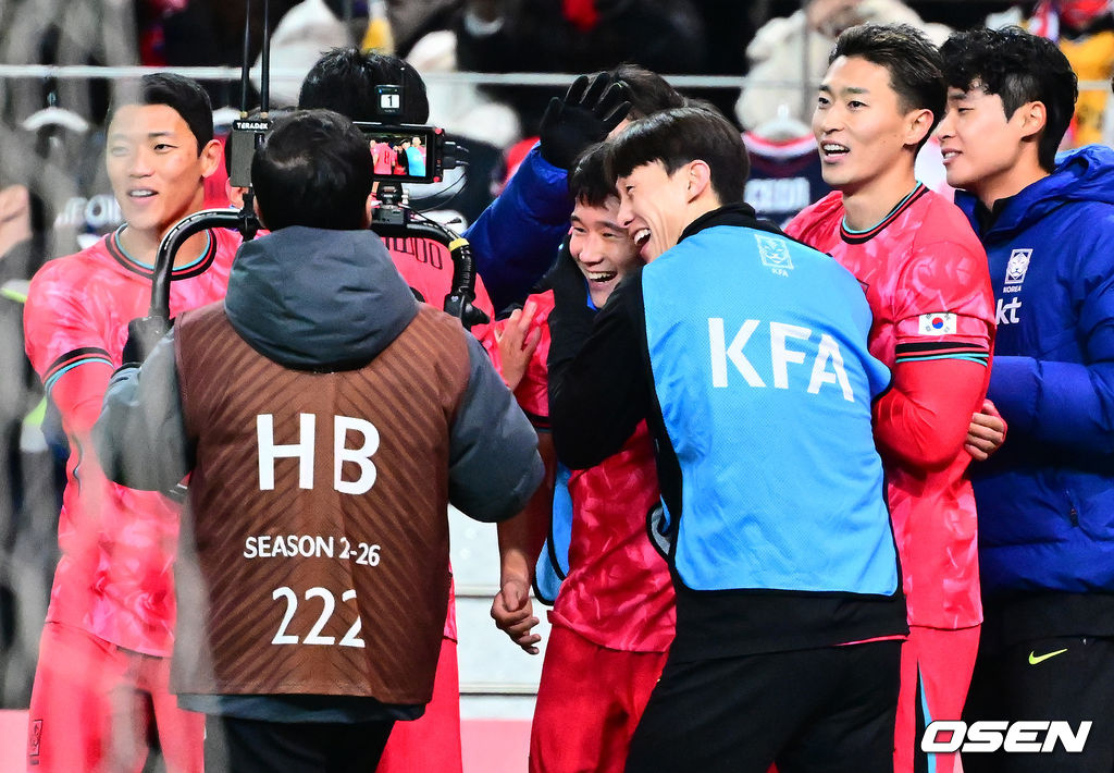 후반 대한민국 이태석이 선제골을 성공시키며 동료선수들과 기뻐하고 있다. 2025.11.18 /jpnews@osen.co.kr