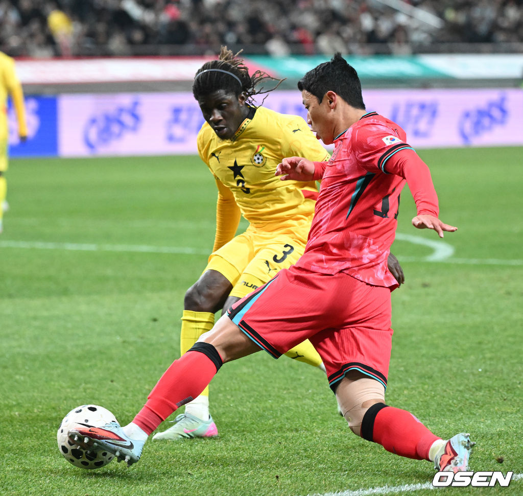 홍명보호의 2025년의 끝을 장식할 경기다. 내달 2026 국제축구연맹(FIFA) 북중미 월드컵 조 추첨을 앞두고 열리는 마지막 평가전이기도 하다. 현재 한국은 가나전 결과와 상관없이 사실상 월드컵 포트 2가 확정된 상태다. 아프리카 예선을 뚫고 북중미행에 성공한 가나는 FIFA 랭킹 73위다. 22위 한국보다는 51계단 낮다. 하지만 통산 전적에서 4승 3패로 한국보다 우위다.