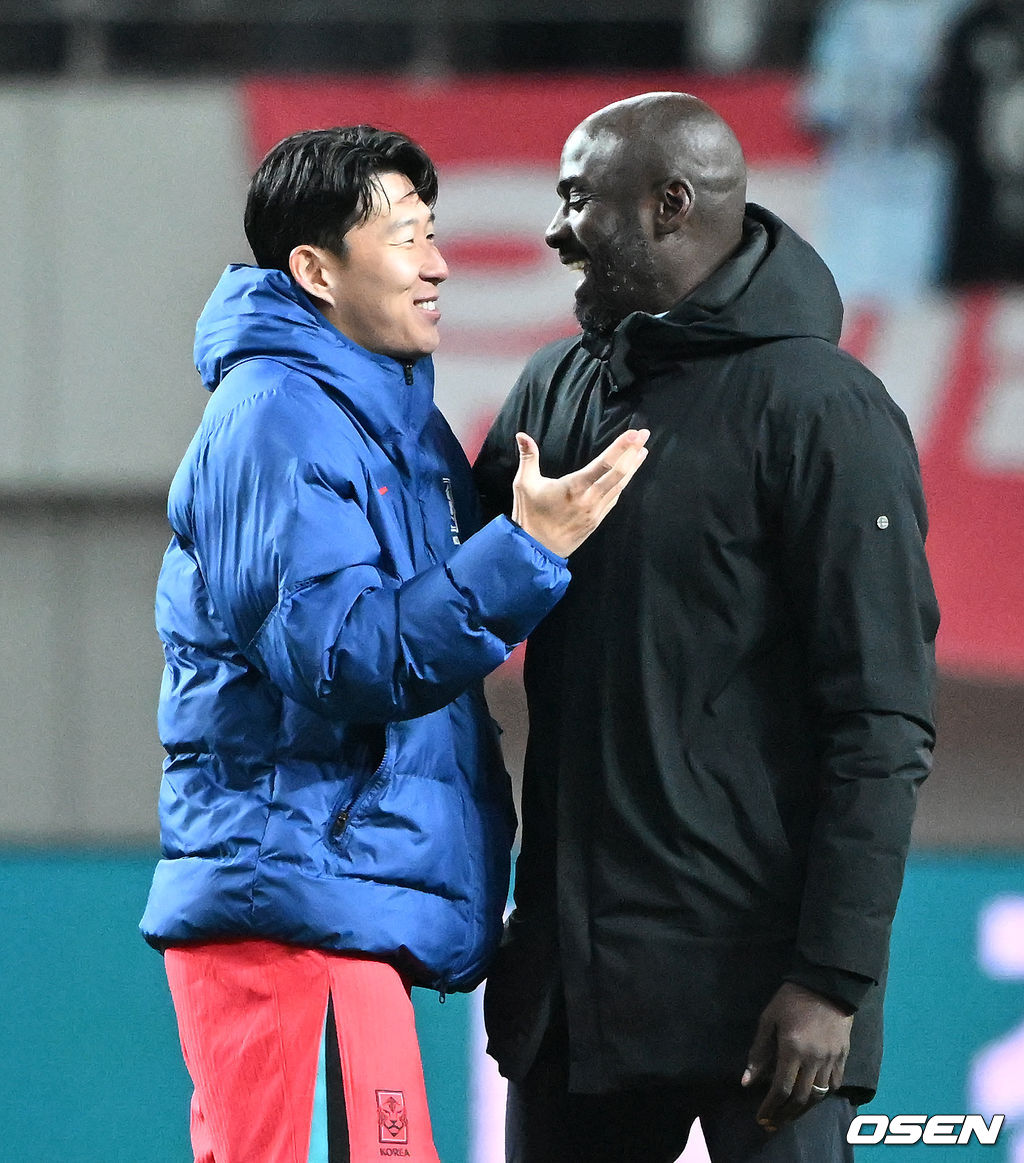 경기 종료 후 대한민국 손흥민이 가나 오토 아도 감독과 이야기를 나누고 있다. 2025.11.18 /sunday@osen.co.kr