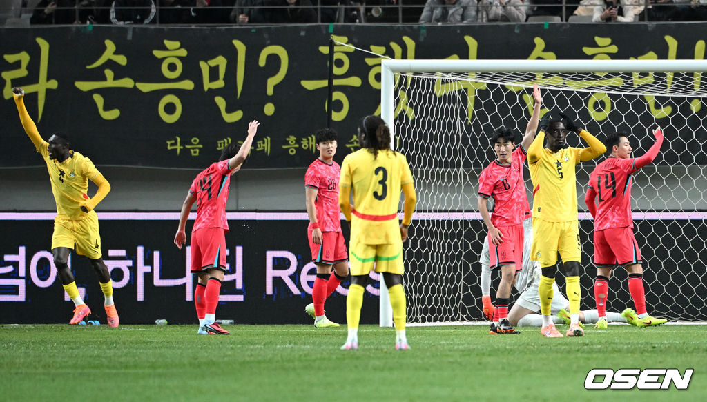 후반 가나 선수들이 골취소에 아쉬워하고 있다. 2025.11.18 /sunday@osen.co.kr