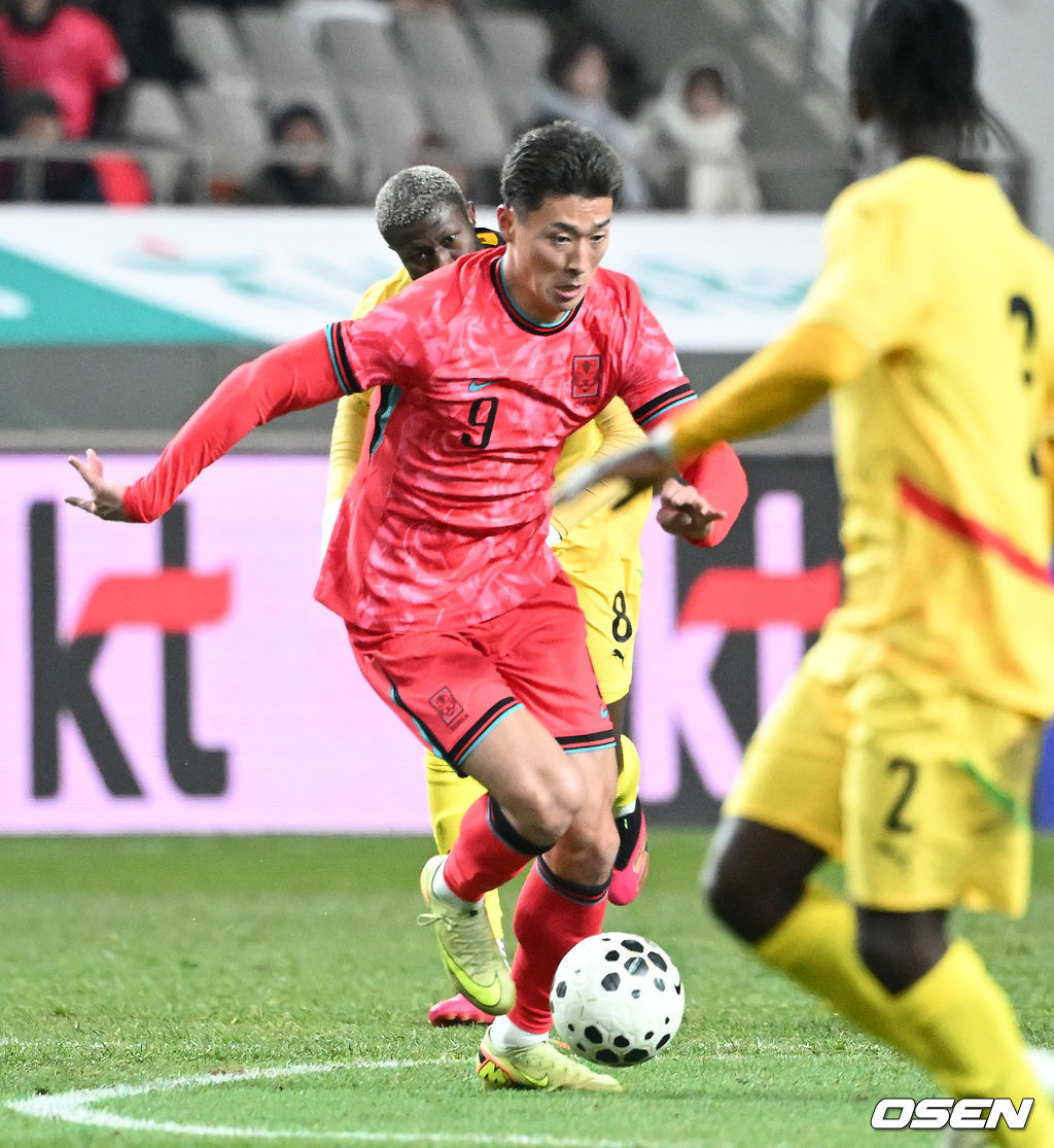후반 대한민국 조규성이 드리블 돌파를 하고 있다. 2025.11.18 /sunday@osen.co.kr