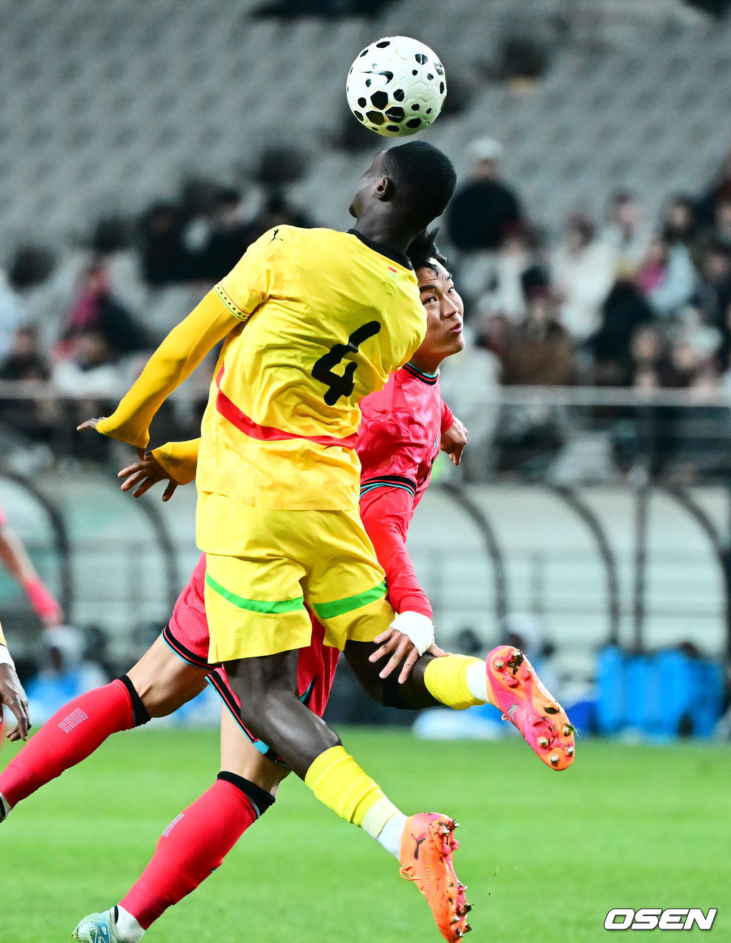 후반 대한민국 오현규가 공중볼을 다투고 있다. 2025.11.18 /jpnews@osen.co.kr
