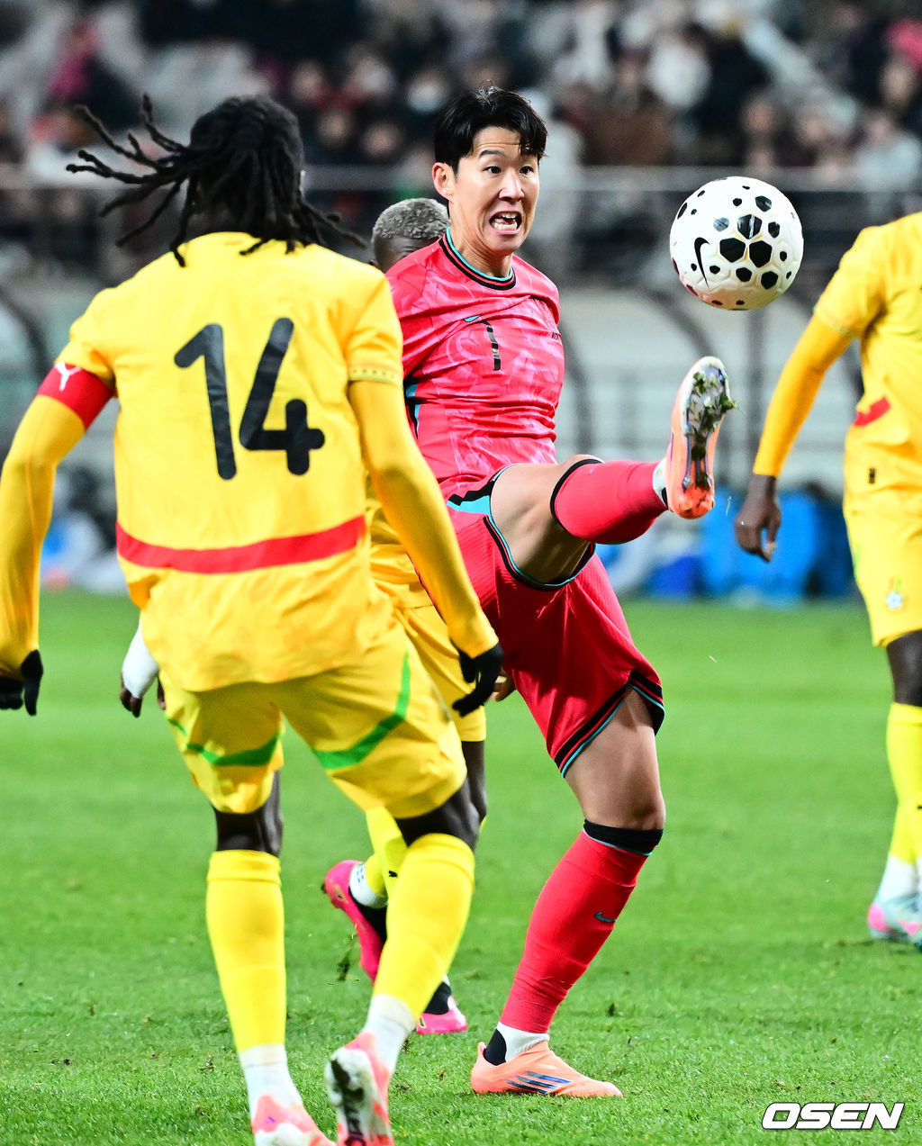 후반 대한민국 손흥민이 볼을 따내고 있다. 2025.11.18 /jpnews@osen.co.kr