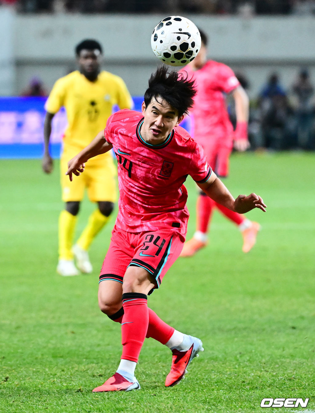 후반 대한민국 김진규가 헤더 패스를 하고 있다. 2025.11.18 /jpnews@osen.co.kr