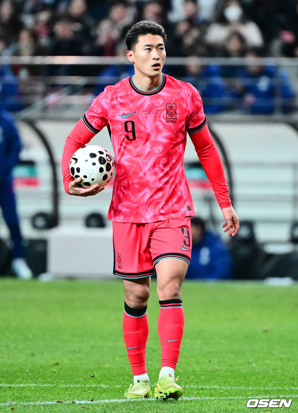후반 대한민국 조규성이 황희찬이 페널티킥을 따내자 볼을 건네고 있다. 2025.11.18 /jpnews@osen.co.kr