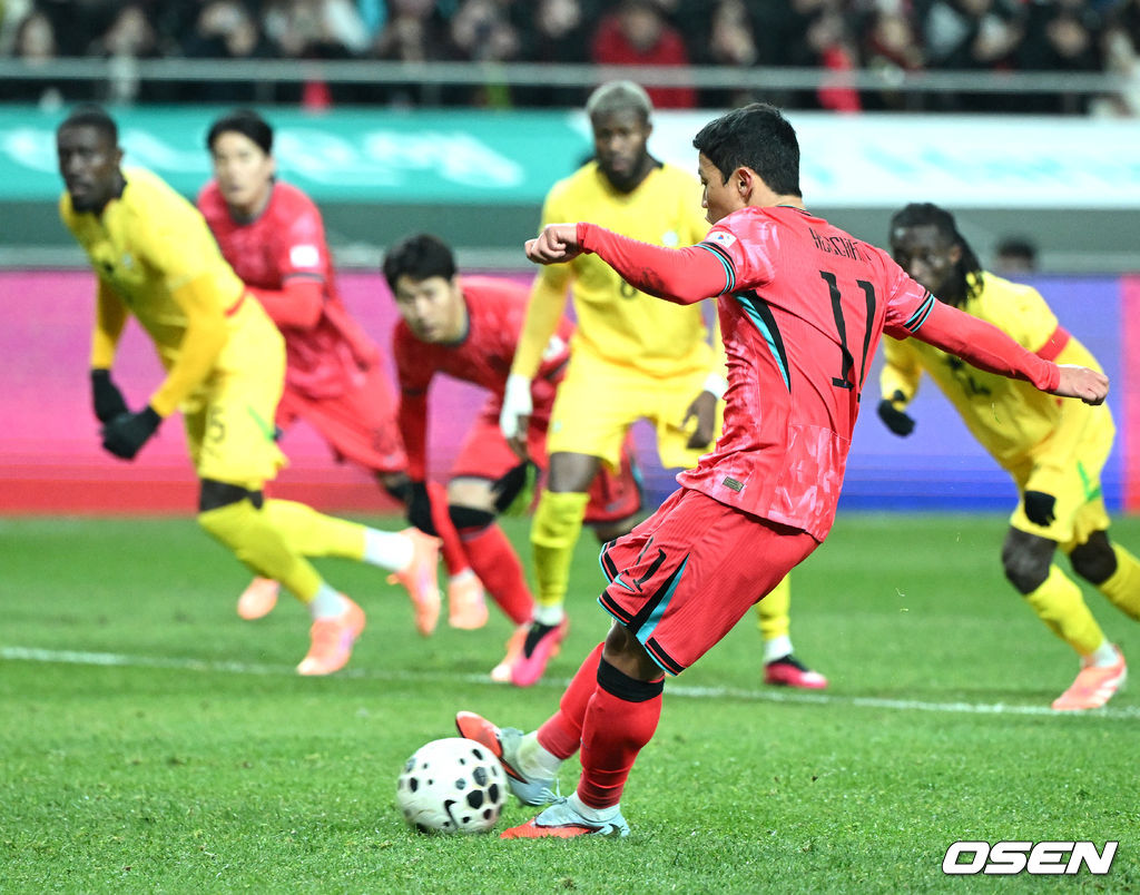 후반 대한민국 황희찬이 페널티킥을 실축하고 있다. 2025.11.18 /sunday@osen.co.kr
