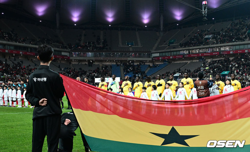 가나 선수들이 국민의례를 하고 있다. 2025.11.18 /jpnews@osen.co.kr