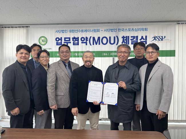 사단법인 대한선수트레이너협회(회장 김용일)와 사단법인 한국스포츠심리학회(회장 김상범)는 20일 선수 지원 체계 고도화와 학술·교육 교류 강화를 위한 업무협약(MOU)을 체결했다.