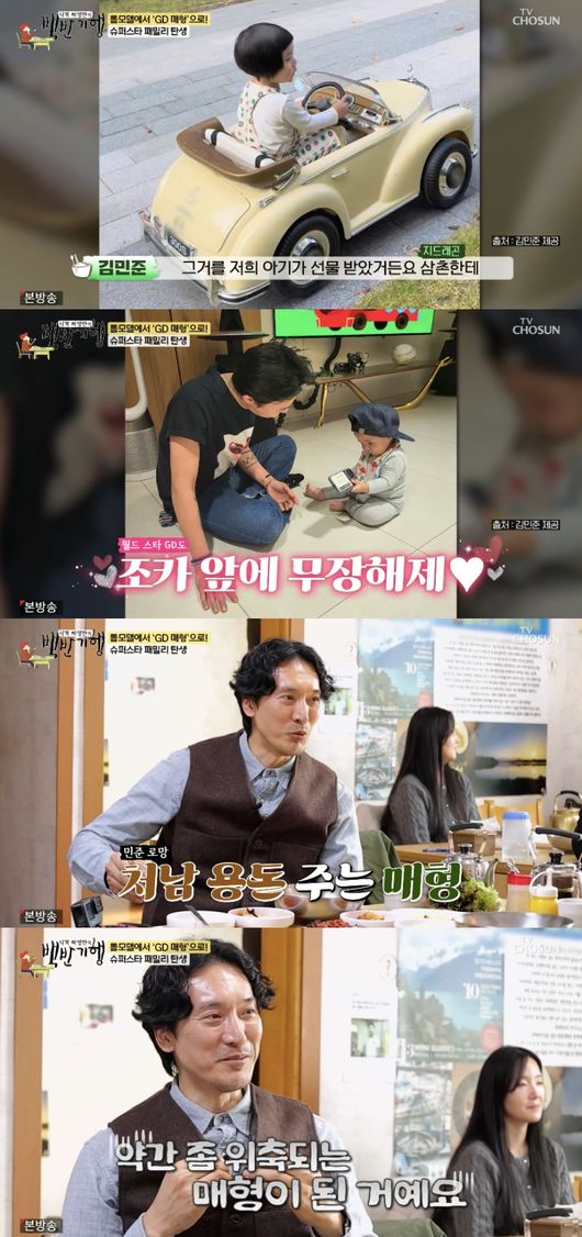 앞서 지드래곤은 조카에게 외제 전동차를 선물해 화제를 모은 바 있다. 김민준은 “뮤직비디오 할 때 소품들이 많지 않나. 그거를 저희 아기가 선물을 받았다. 삼촌한테. 그걸 올렸는데 뮤직비디오 자동차인지 사람들이 다 알더라. 기사에 나고 그랬다”라고 전했다.