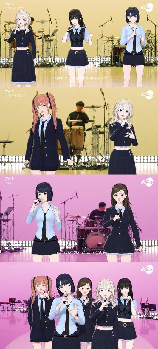 버추얼 걸그룹 OWIS(오위스, 세린·하루·썸머·소이·유니)는 지난 6일 유튜브 채널 '잇츠라이브'(It's Live)를 통해 밴드 버전으로 재탄생한 데뷔 타이틀곡 'MUSEUM'(뮤지엄)과 수록곡 무대를 공개했다.