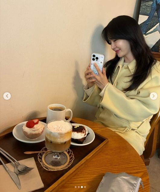 성유리와 이진은 커피와 케이크가 놓인 테이블을 사이에 두고 똑같은 포즈로 서로를 촬영해주고 있었다. 안경을 쓴 편안한 모습의 이진과 미소 짓고 있는 성유리였다. 두 사람은 여유롭고 행복한 표정으로 일상을 즐기고 있었다.