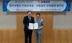 ▲김기태보람상조대표이사(우측)와문신일명지대학교미래교육원장이 업무협약식에서기념촬영을하고있다.[사진제공=보람그룹]□학점은행제‘장례산업경영학전공’개설…상조전문인력양성본격화□김기태대표제안...