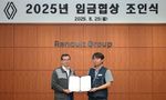 [OSEN=강희수 기자]르노코리아(대표이사 스테판 드블레즈)가25일 르노코리아 부산공장에서 노사 대표가 참석한 가운데 ‘2025년 임금협상 조인식’을 열었다.르노코리아 노사는 지난4월 상견례 이후 총13차례 교섭을 거쳐 도...