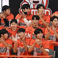 2025.12.09 20: 11OK저축은행 응원하는 롯데 자이언츠 신인 선수들