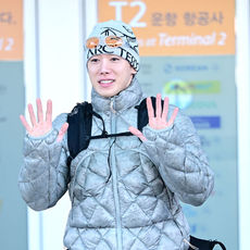 원호, '출국길 미소와 하트 선물'