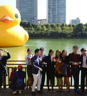 러버덕 상륙,'시민들은 사진 찍기 바빠요~'