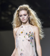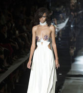 런던패션위크,'화려한 브로치 사이로 보이는 속살'