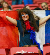 [프랑스-나이지리아]프랑스 미녀 축구팬,'국기를 두른채'