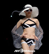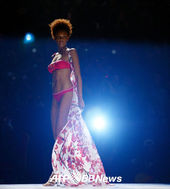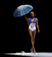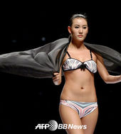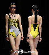 중국패션위크,'휘날리는 블랙망토 사이에 돋보이는 비키니