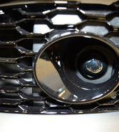 아우디 RS7 스포트백의 엠블램과 격자무늬 그릴